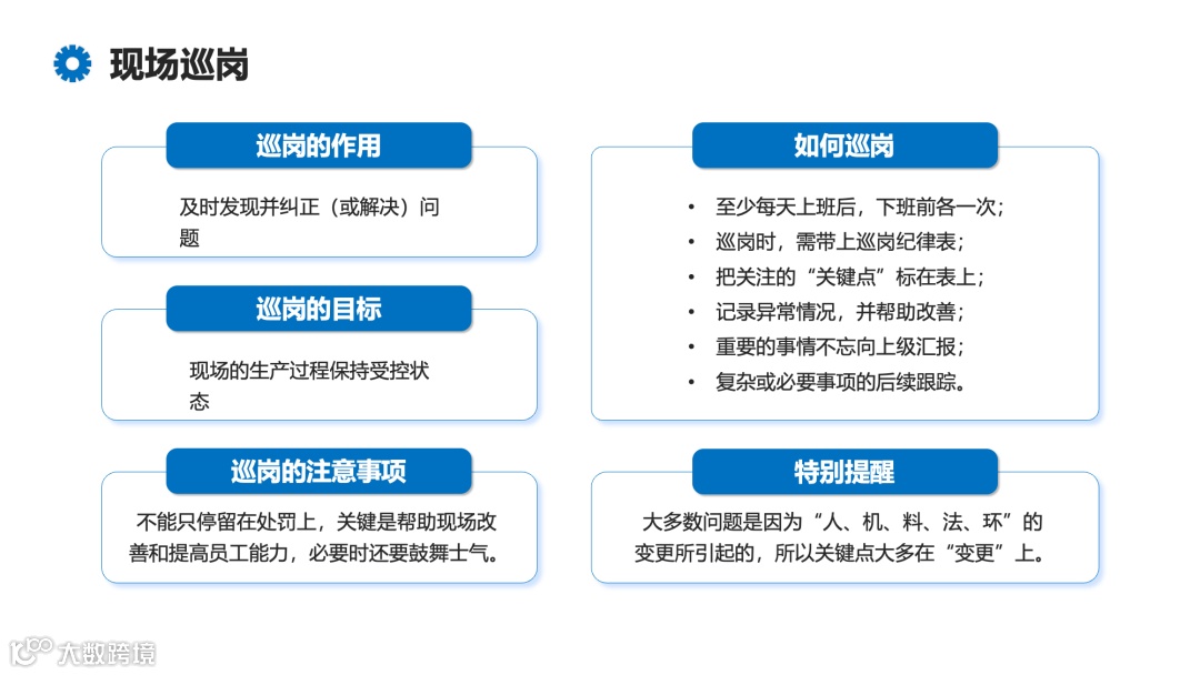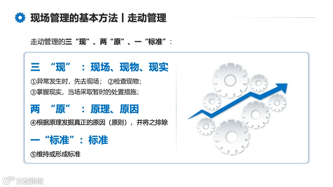 走动管理是现场管理的“眼睛”,其精髓在于“三现、两原、一标准”的落地。