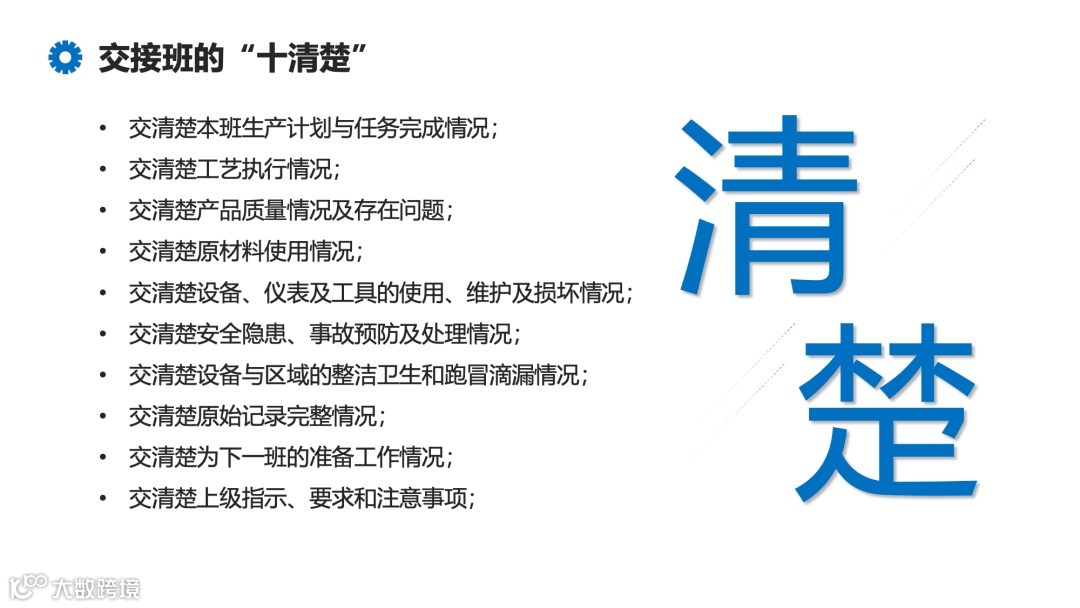 日常管理是现场运营的“毛细血管”,交接班则是保障生产连续性的关键节点。