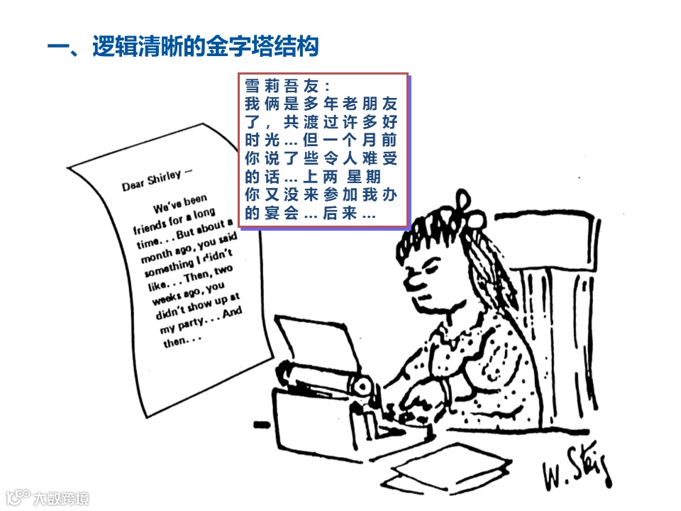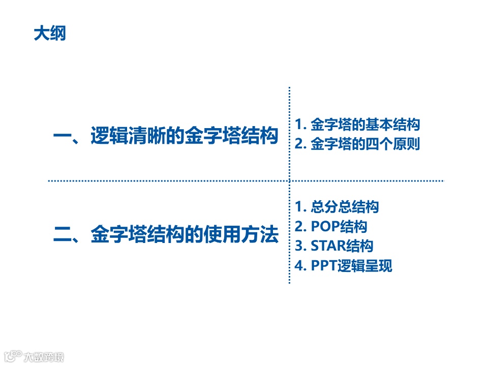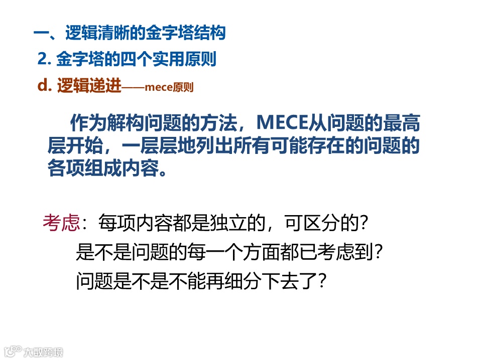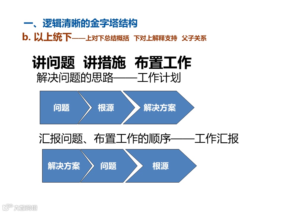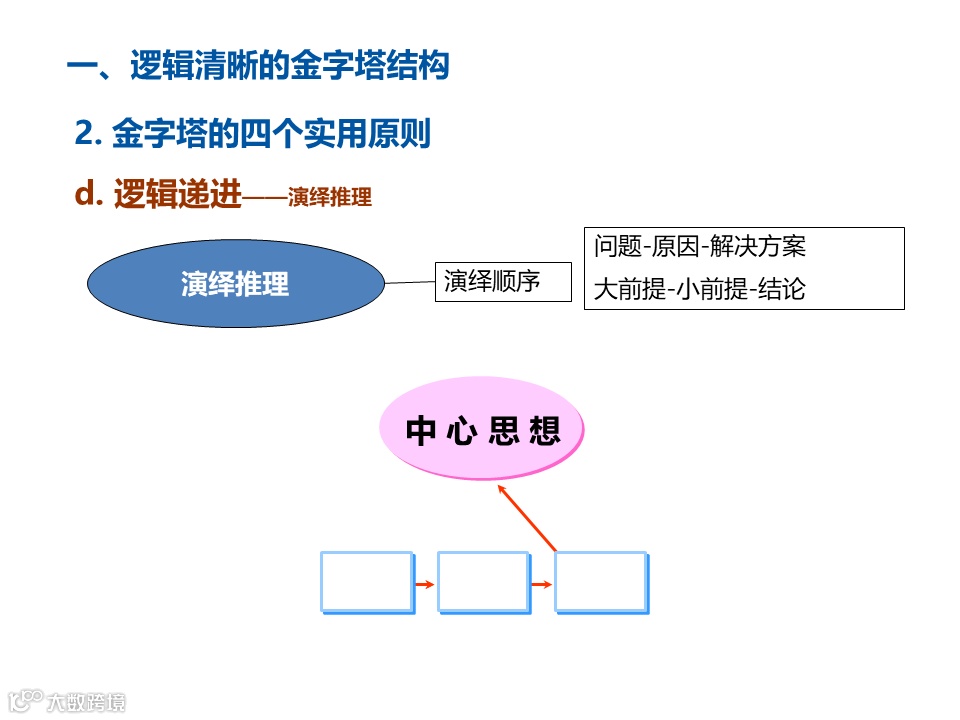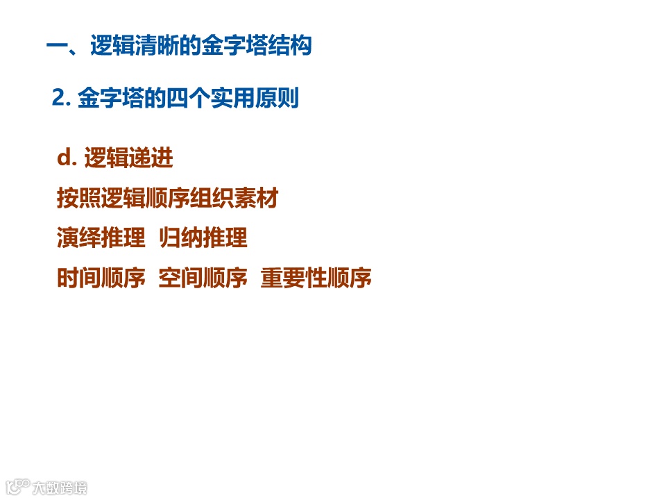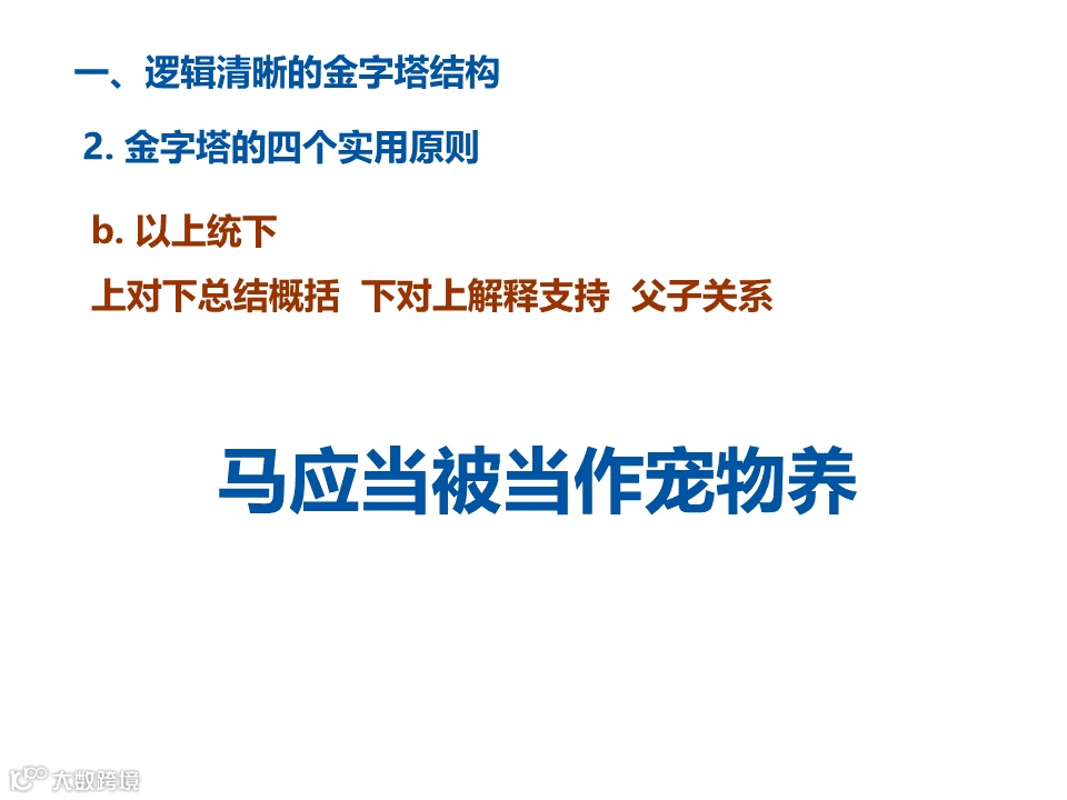 “金字塔原理简单来说就是:我们在写作、思考、表达、解决问题的时候,要像金字塔结构一样,既突出重点,又有层次性和逻辑性。 金字塔通常可以分为“塔尖、塔身、塔基”三个部分。塔尖就是你要表达的总的论点、结论、你要干什么,塔身就是你的分论点,塔基就是支撑你论点的论据。