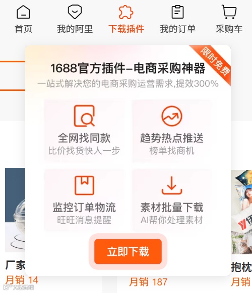 (二) 官方插件辅助:1688官网提供专用插件,详细教程参照官方说明。