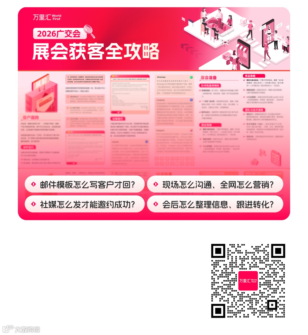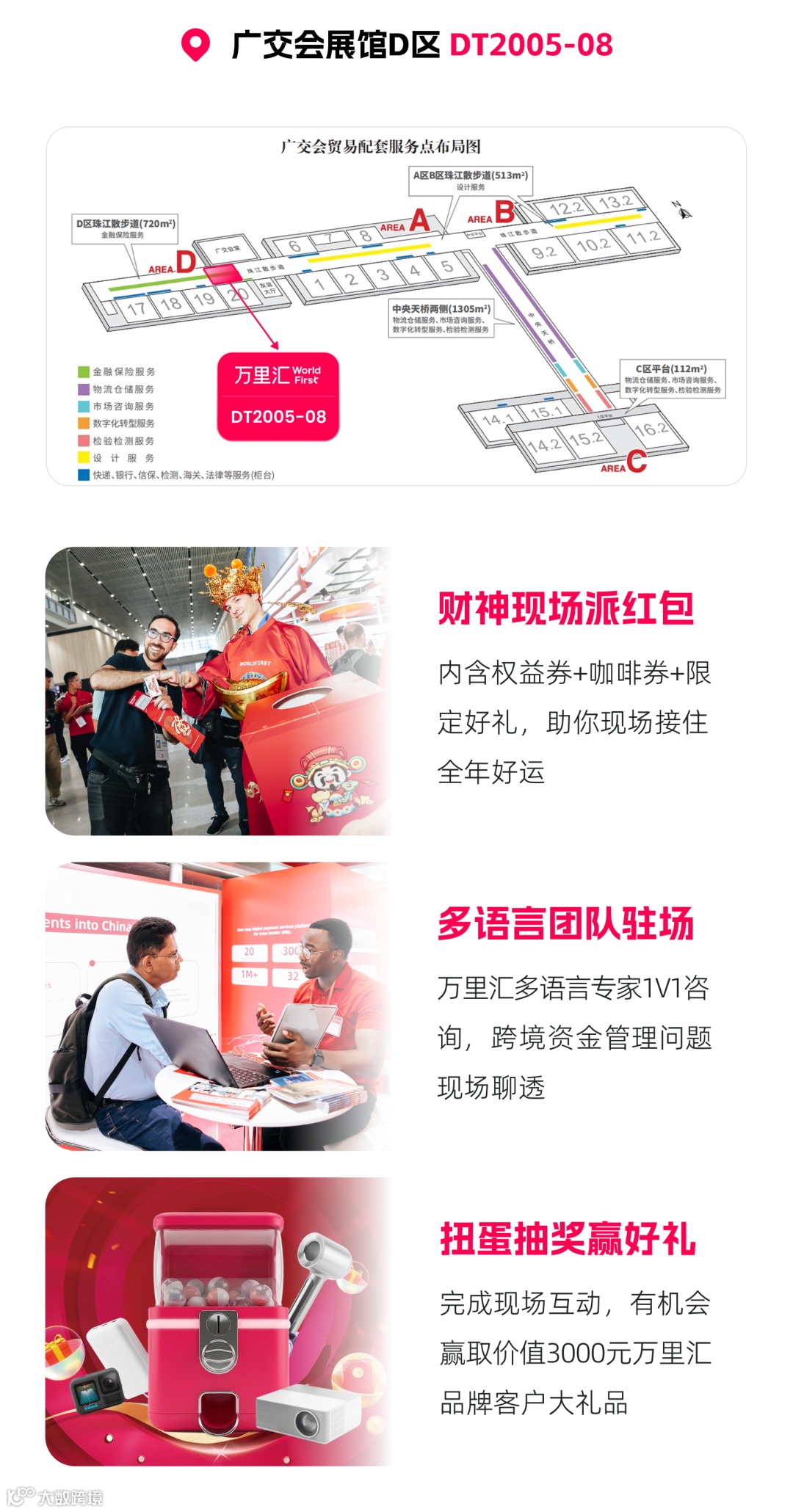 万里汇联合全球50余位顶级KOL,覆盖超5000万海外粉丝,组成WorldFirst Canton Tour团队。广交会期间,KOL天团将亲临万里汇客户展台,为出海品牌提供流量支持与销售转化。