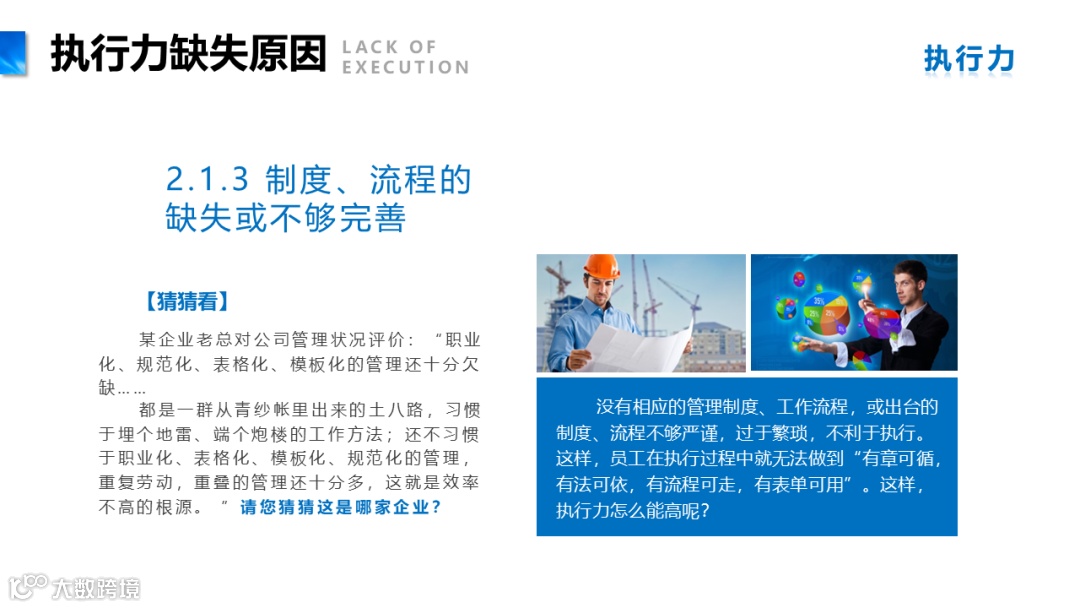 文化与制度缺陷:缺乏结果导向的文化,流程冗余或责任分工模糊,导致“见子打子”式应付。如某企业因制度未职业化、表格化,造成管理低效。