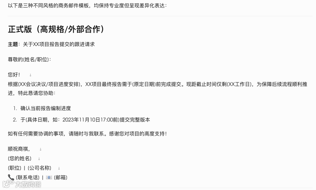 『催下那个报告,尽快给我』→ 正式版+温和版+紧急版三种写法"