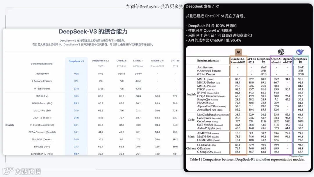 DeepSeek-V3:在主流榜单中位列开源模型榜首,推理速度大幅提升,综合性能对标顶级闭源模型(如GPT-4o、Claude-3.5)。