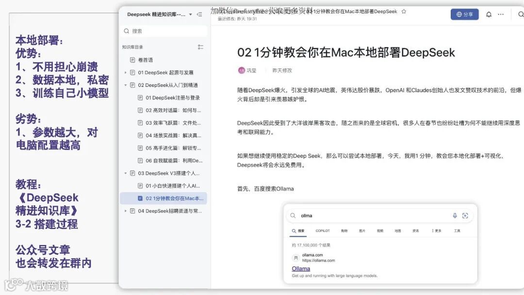 教程:提供《DeepSeek精进知识库》指导搭建流程。