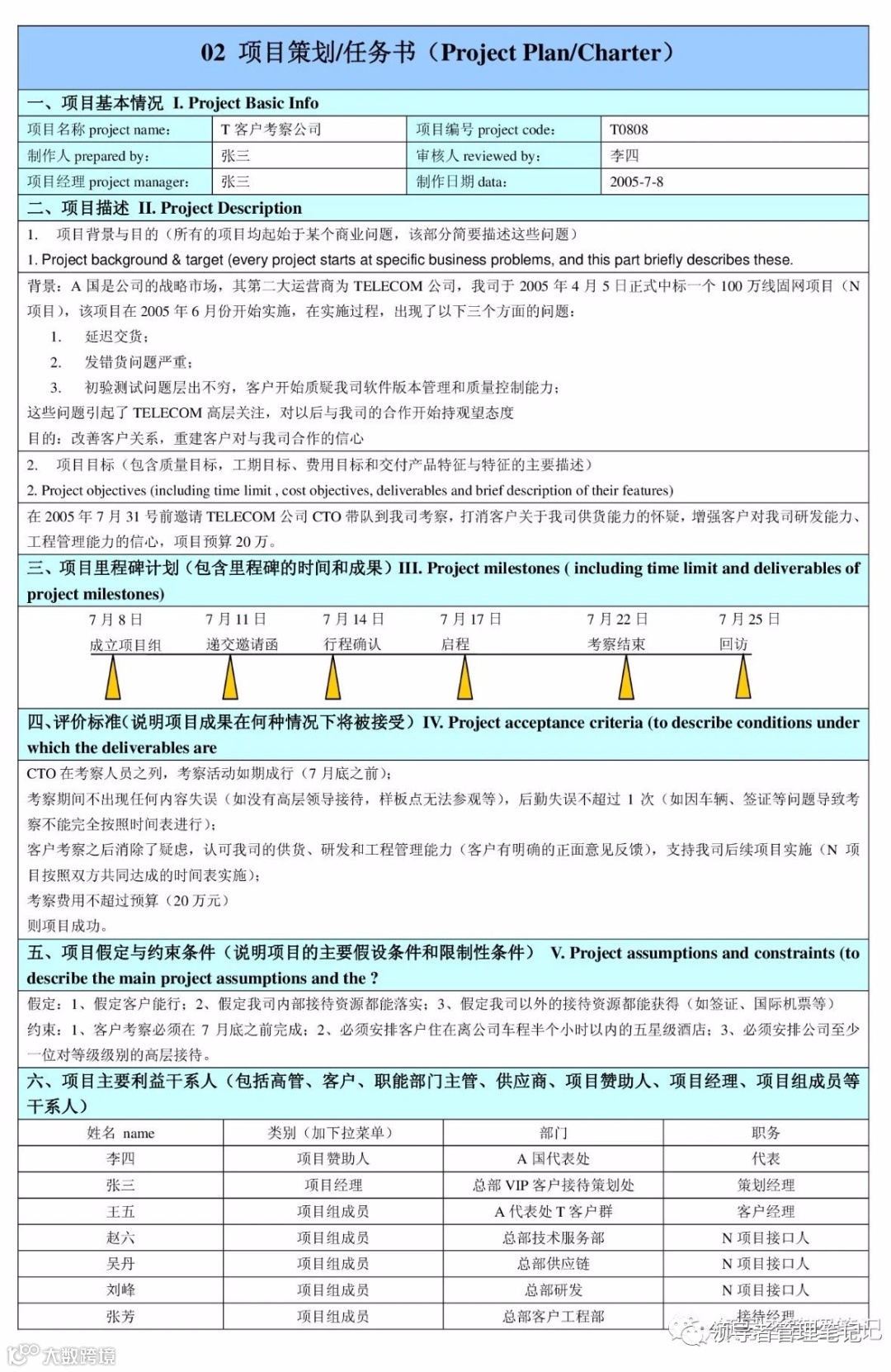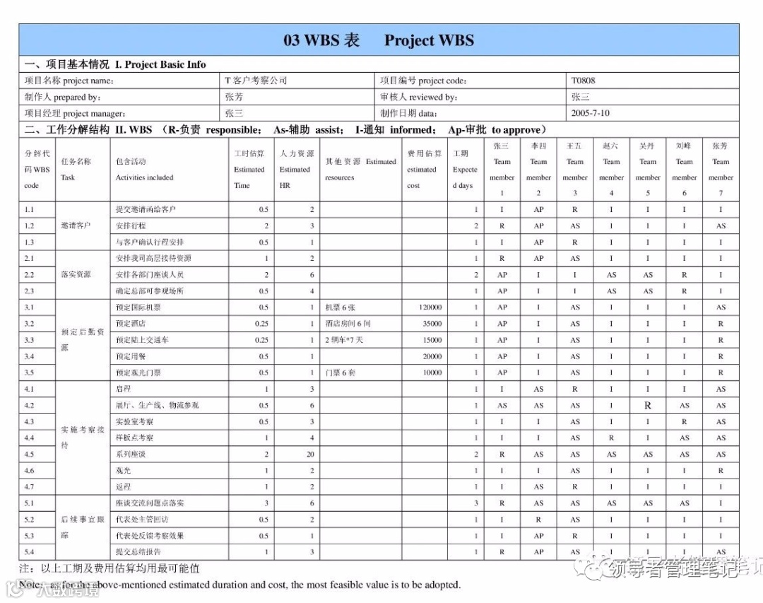我们都知道,项目组的成员,通常都来自不同部门,研发部的、技术部、PMO、领导、业务部等等,因为项目的存在,这些成员,临时组建成为一支团队。通过这张表,就把所有项目成员的职责明晰起来,责任到人!
