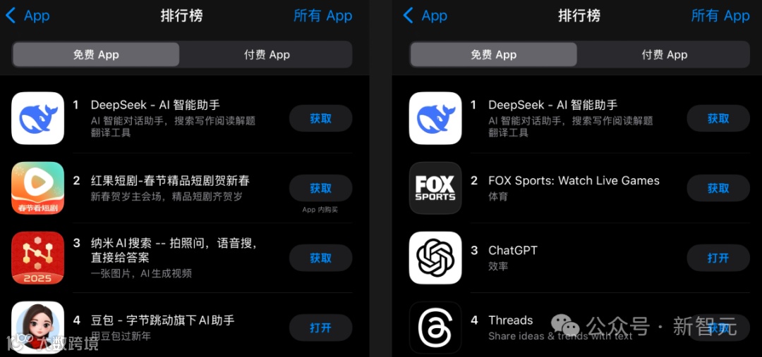 史上首次,DeepSeek登顶中美AppStore!NYU教授:全球「AI霸权」之争已结束