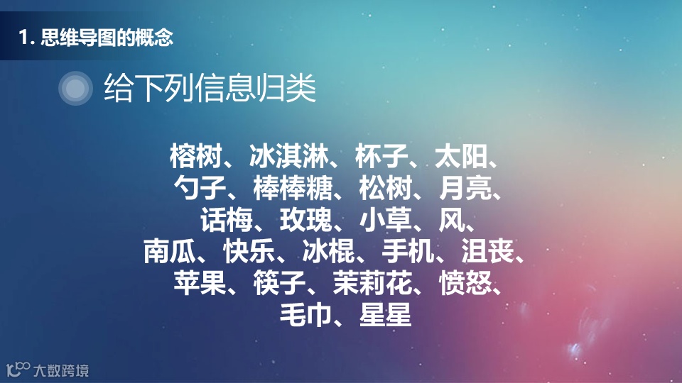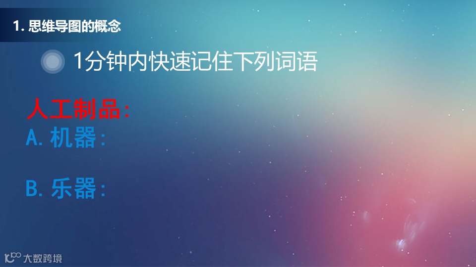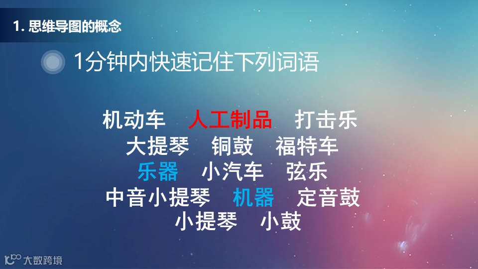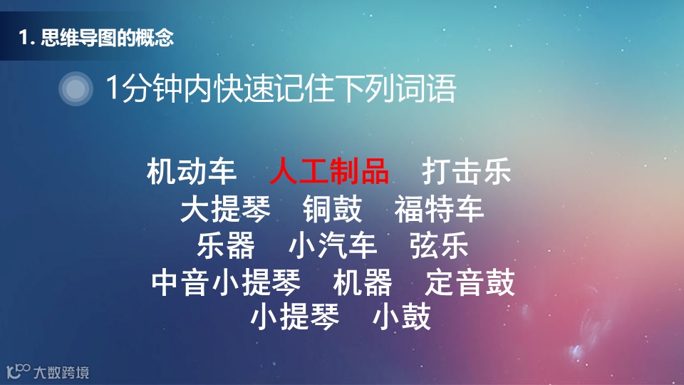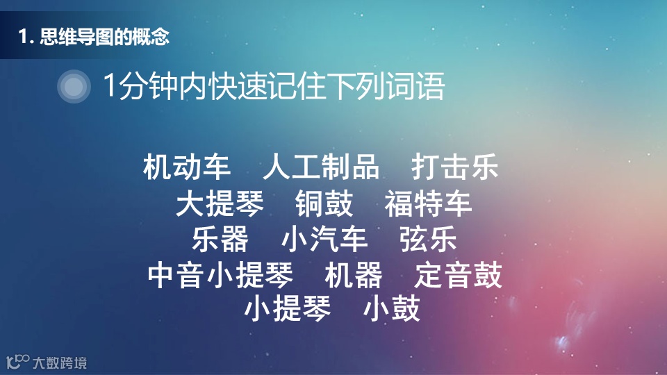 - 通过一系列词汇的快速记忆练习,演示了思维导图在记忆复杂信息方面的有效性。