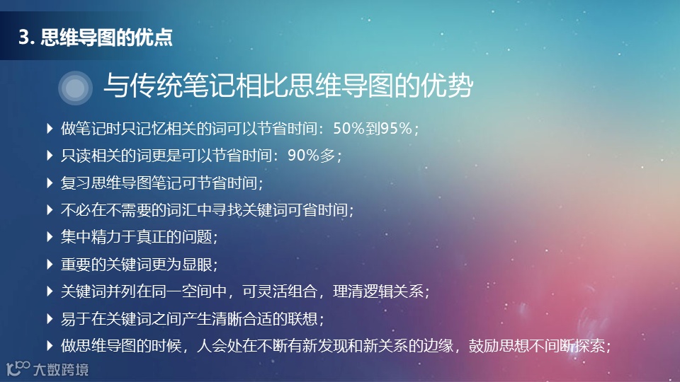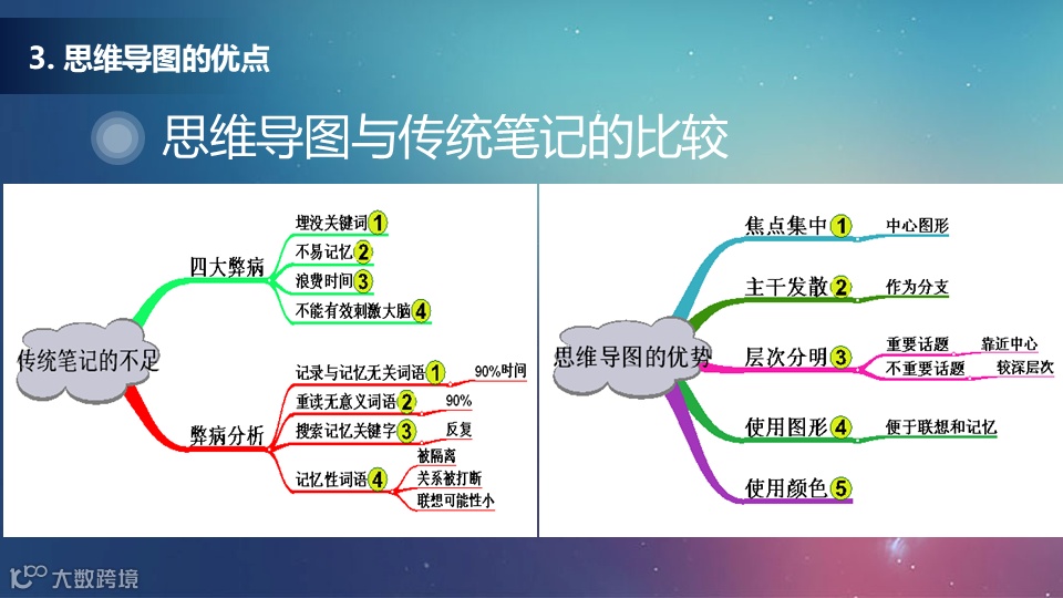 - 与传统笔记相比,思维导图具有显著的时间节省和逻辑清晰的优势。