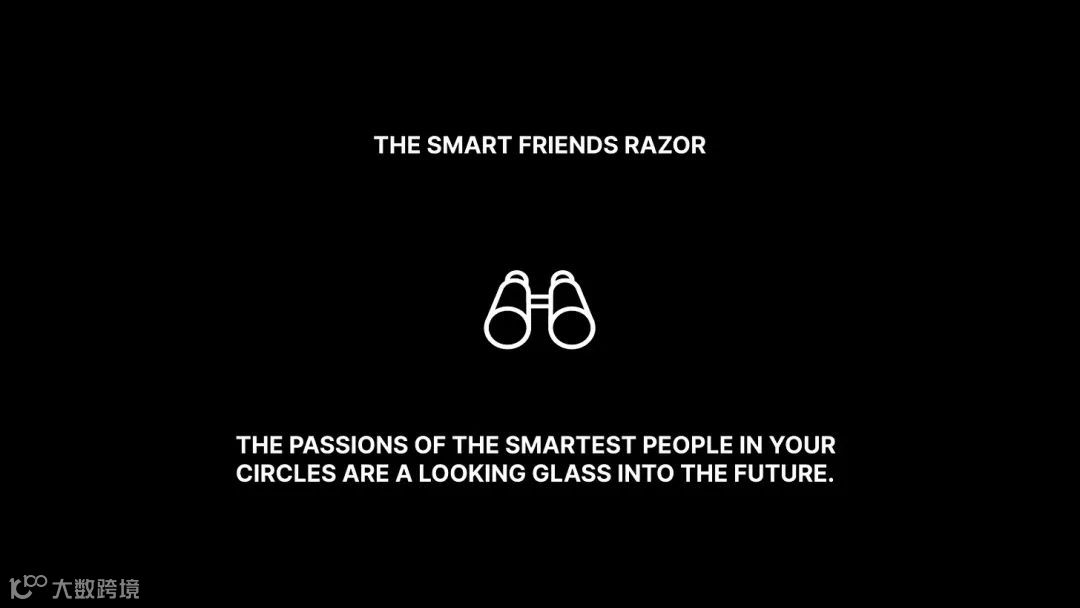 如果你最聪明的朋友都对某件事感兴趣,那这件事就值得关注一下。在你的朋友圈子里,可以说那些最聪明的人的激情所在就是未来的风口所在。