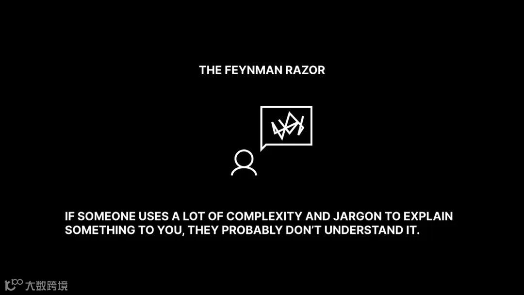 费曼剃刀以美国著名理论物理学家理查德·费曼(Richard Feynman)的名字命名,意思是如果你不能向一个5岁的孩子解释某个复杂的术语,你就没有真正理解它。