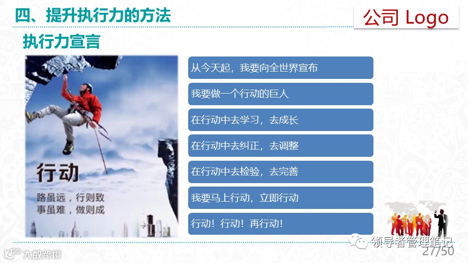 个人角度:把想法变成行动,把行动变成结果;保质保量完成任务,不折不扣输出结果。