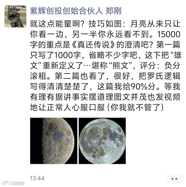 郑刚这个人脑子一直比较混乱,没什么逻辑,但过去一直是一个做事很积极,很有热情的人。这些年也许是因为投资行业压力太大,他的变化非常明显,很多时候显得不是很正常,好像完全丧失了一个成年人的基本自控能力。