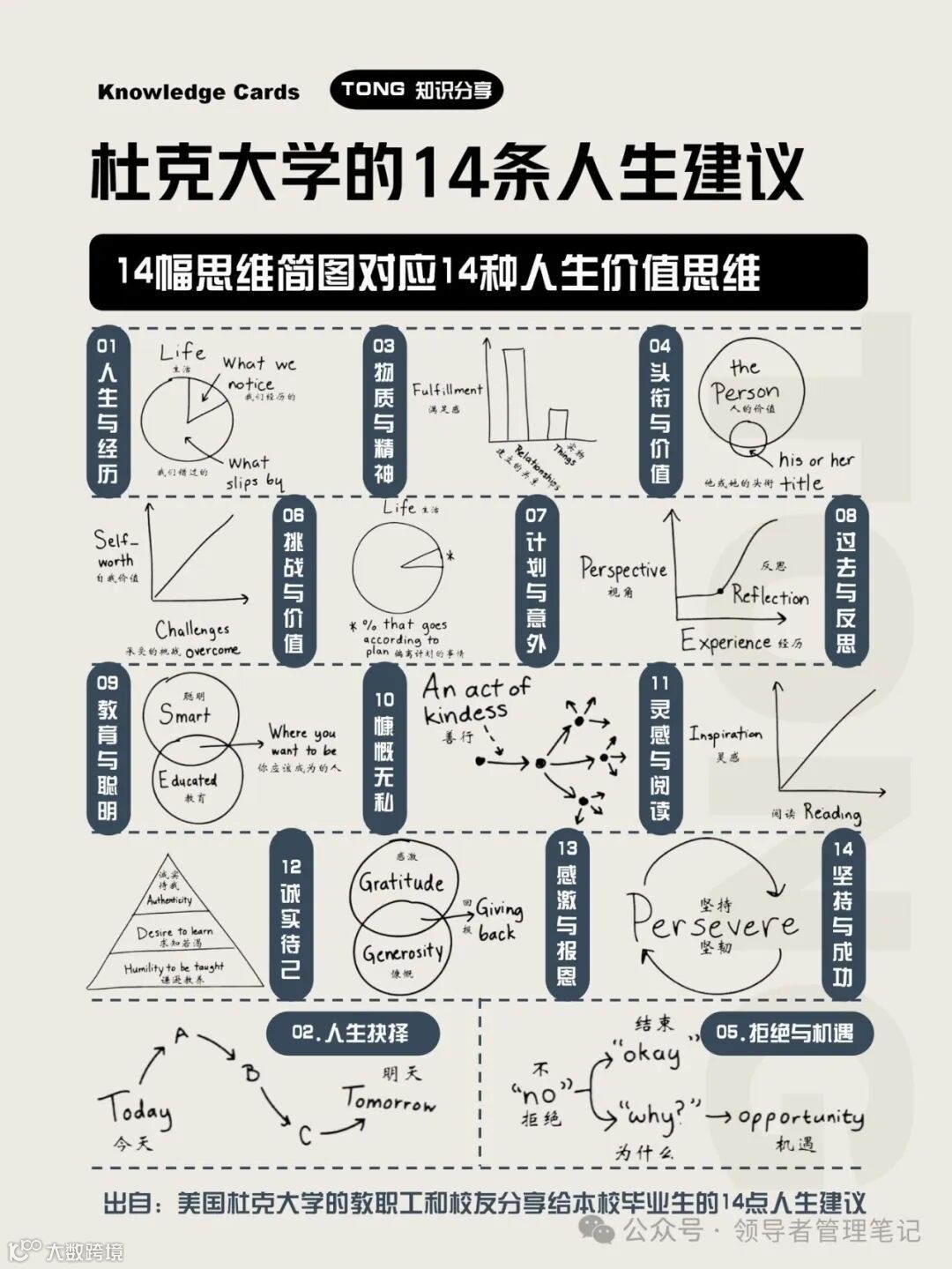 本文是几年前杜克大学送给毕业生的14幅漫画,讲述了这所非常有特点, very spirited 的学校对学生的期许。