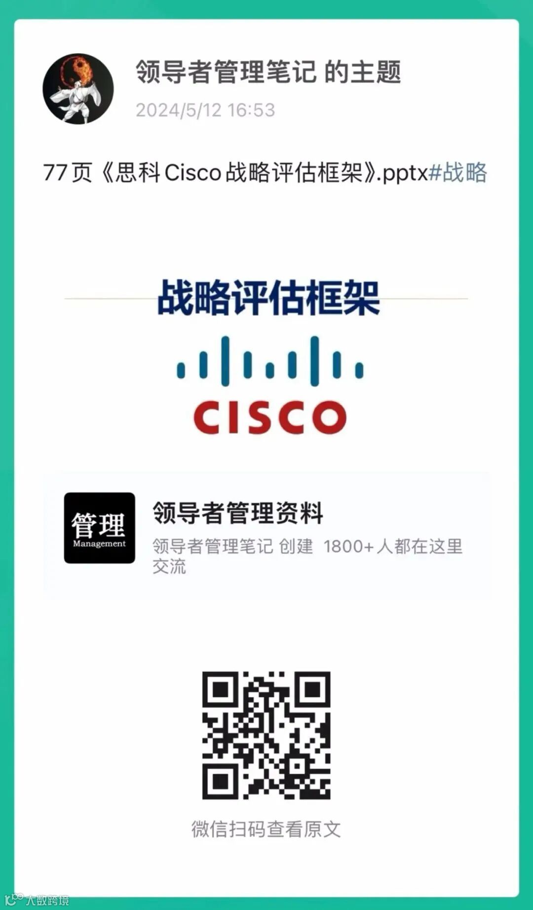 三峯经营了一个《领导者管理资料》“知识星球”,主要是面向企业管理人员、领导者,以及希望成为一流领导者的朋友提供“管理&领导力”相关的资料与咨询沟通,目前会员超过1800人,资料超过2600份,并且每天都在更新。有兴趣的读者可以扫描下方二维码了解,目前加入《领导者管理资料》“知识星球”可以获得“职场破局、时间管理、阿里管理三板斧、易经智慧、思维工具、沟通能力等在内的10份付费视频课程”。