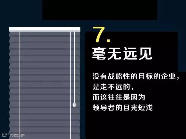 特别是当团队有点小业绩,年底得到老板赏识的时候,这种病极容易出现在不成熟的管理者身上,要知道这个时候,“敌人”或许早已经用枪口瞄准了你,这极有可能成为在“业绩”中死去的将军。