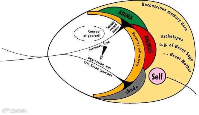 心智的荣格模型,图中的阴影被称为“负面人格”。© jungcurrents