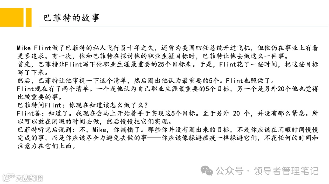 重要消息:微信公众号又改版了,即便我每天都按时发文,你也可能收不到信息,甚至可能永久失联。唯一的办法就是把“领导者管理笔记”公号设置星标☆,这样才能每天照常收到文章。