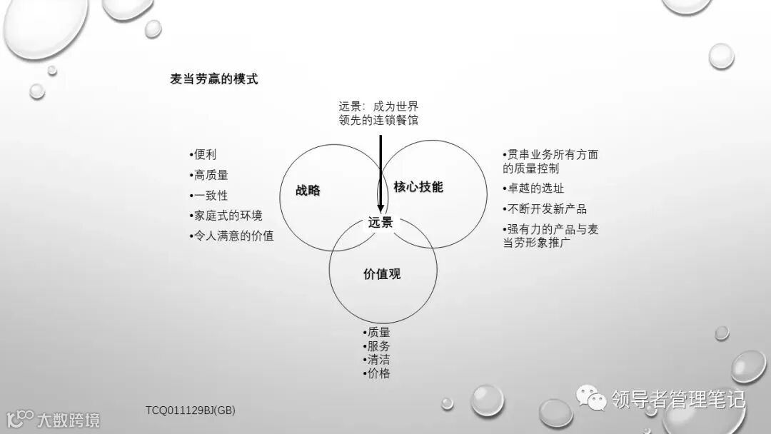战略:聚焦“便利、质量、一致性”,通过全球统一的QSC&V价值观与本地化菜单调整(如印度市场推出素食汉堡)适应不同市场。