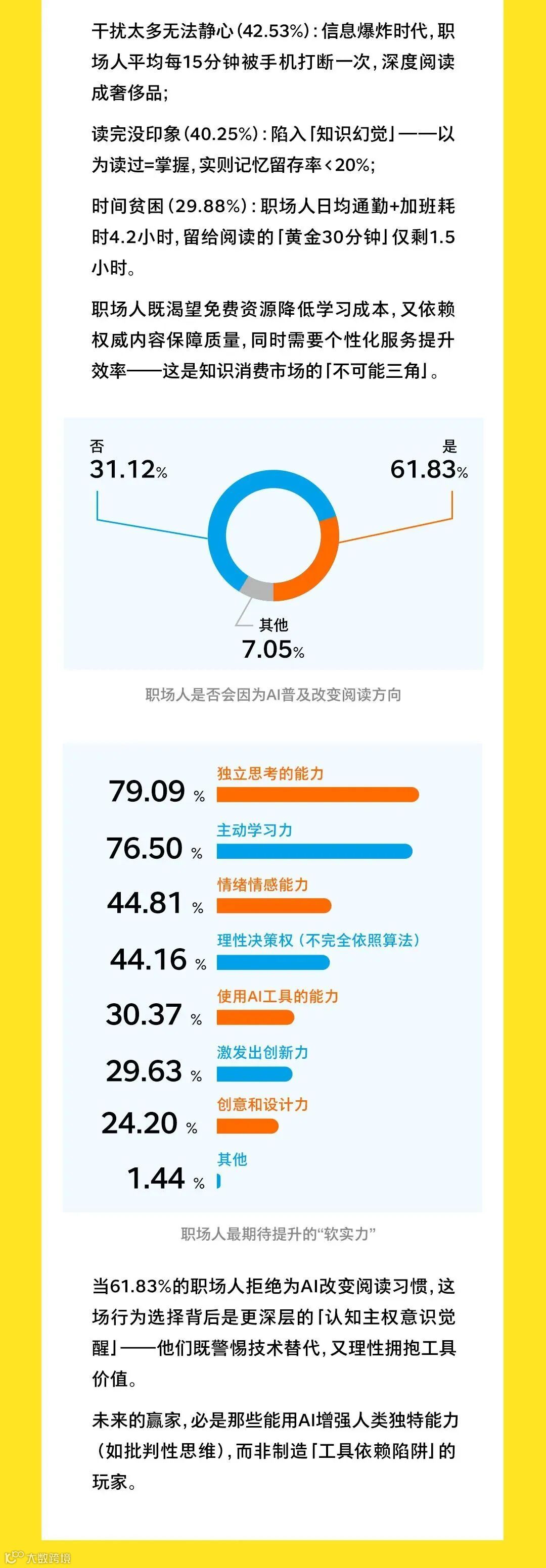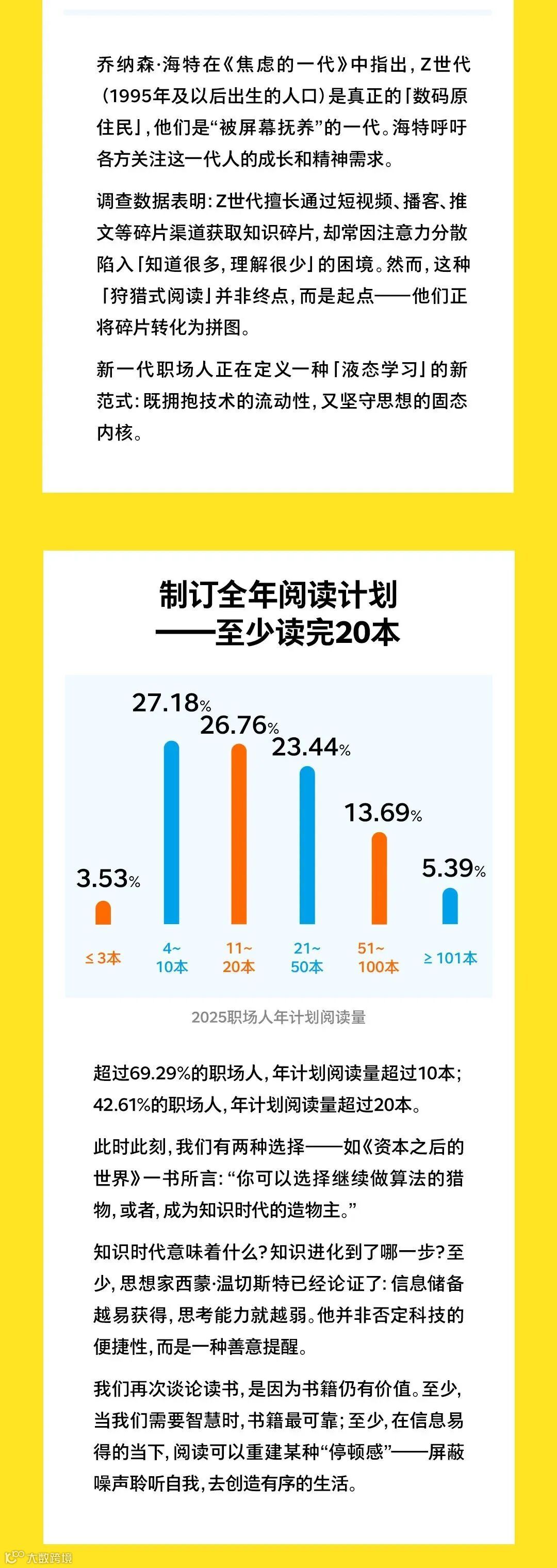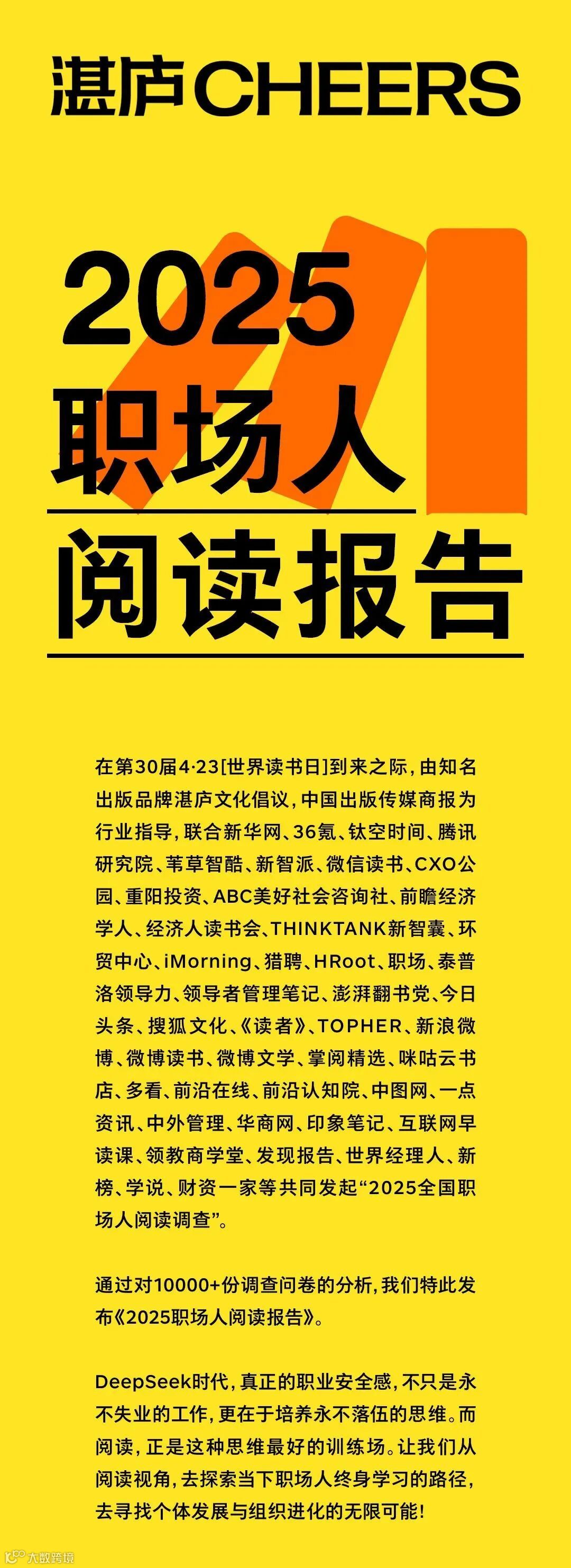 通过10000+份调查问卷的分析,我们特此发布《2025职场人阅读报告》。从阅读视角,深入了解职场人的知识现状与精神需求,探究终身学习的可能。