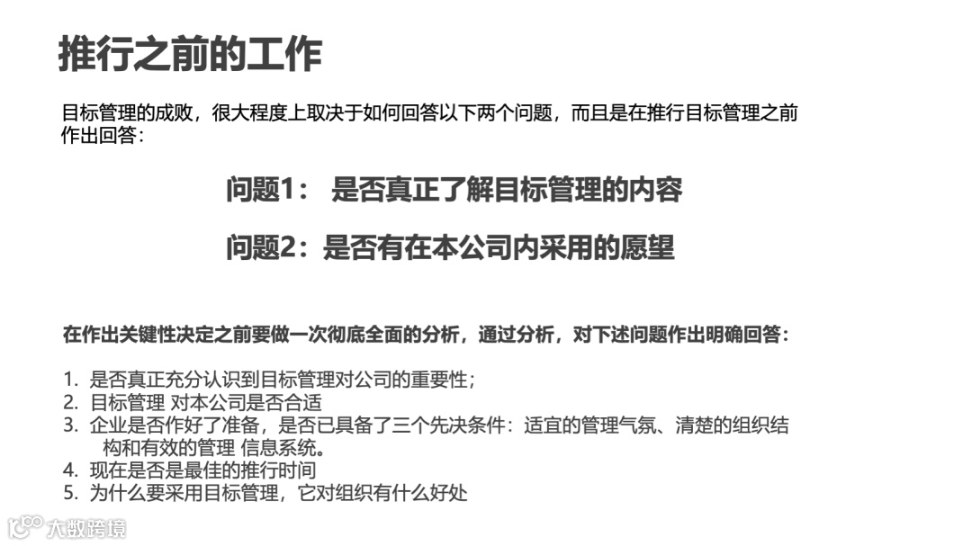 传统管理:高层制定目标,基层被动执行,如“今年销售额增长20%”,员工不知“为何需要增长”及“如何配合”,导致执行敷衍。
