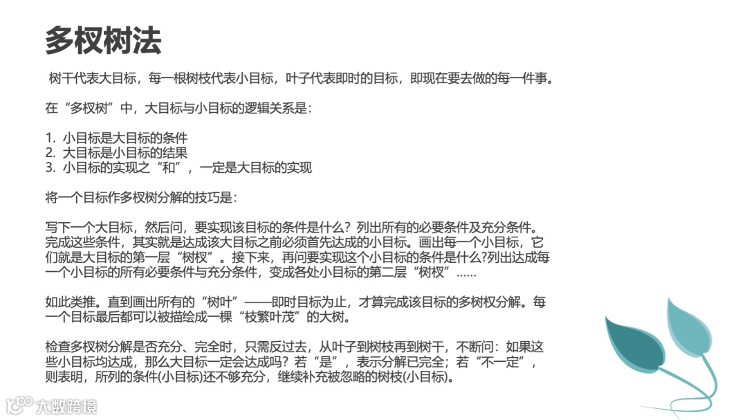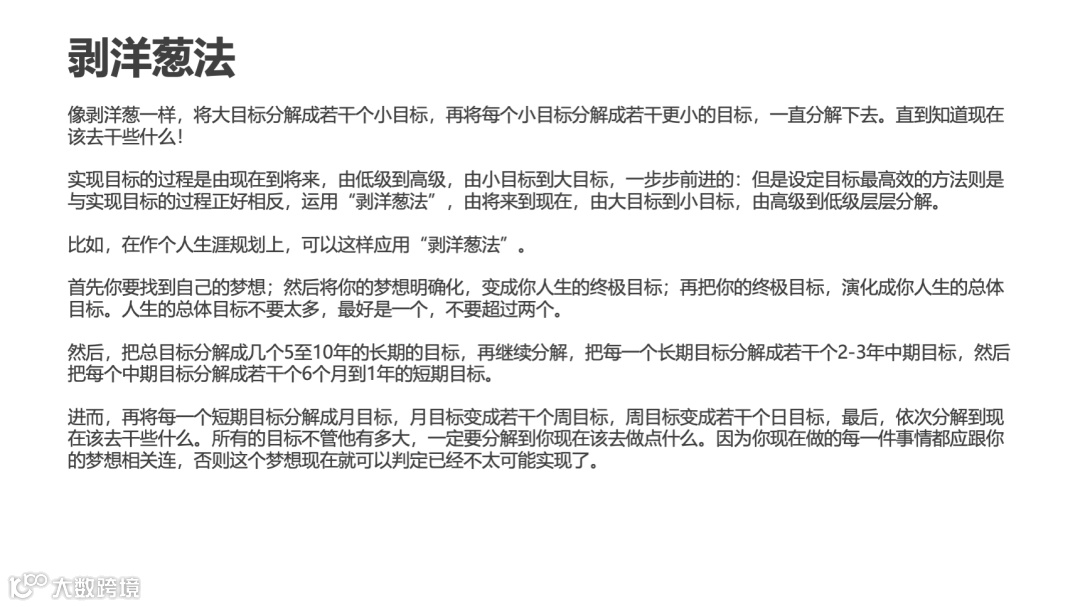 工具层:善用SMART原则、剥洋葱法、多杈树法等工具,结合数字化系统(如OKR工具、项目管理软件)提升效率;