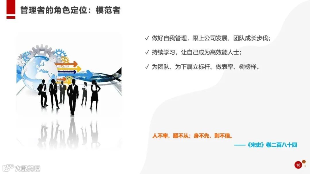 模范者: 以身作则,持续学习,成为团队的榜样和标杆。正如古语所说:“人不率,顺不从;身不先,则不信。”