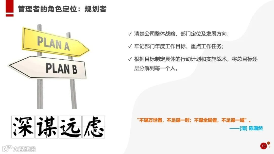 规划者: 站得高、看得远,将公司战略分解为团队目标和个人任务。