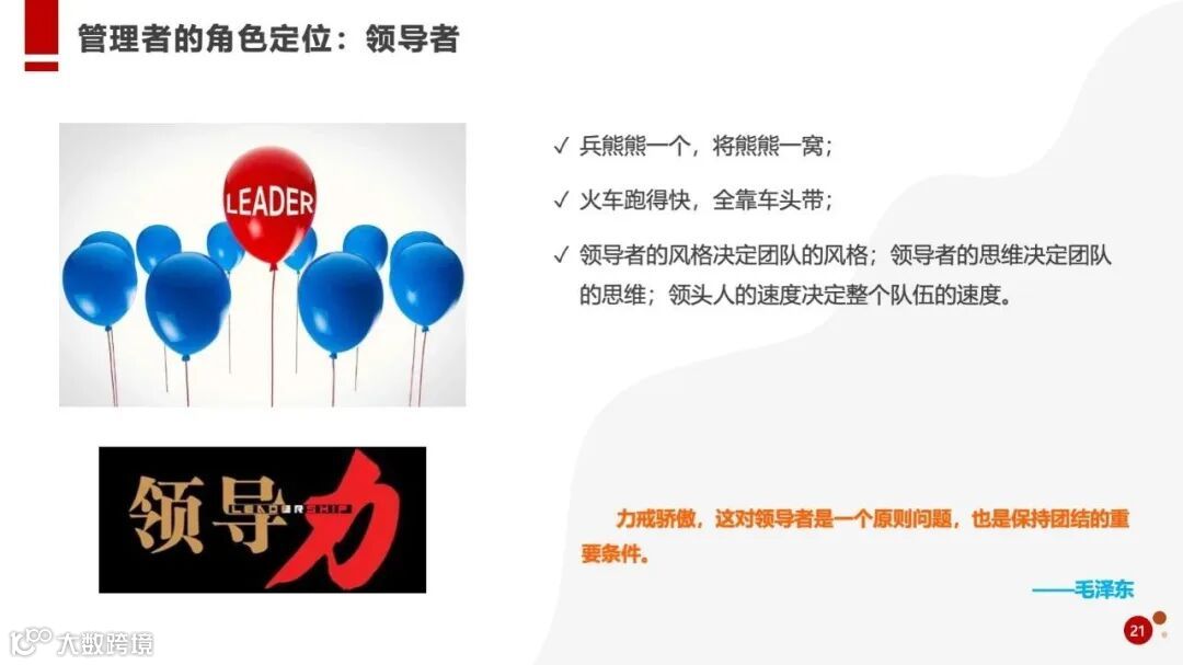 领导者: 塑造团队的风格和思维,火车跑得快,全靠车头带。