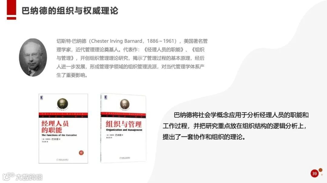 这份文档也带我们回顾了管理学的一些经典理论,从巴纳德的组织与权威麦格雷戈的XY理论、马斯洛的需求层次理论,到马利克和德鲁克的思想。这些大师们为我们构建了管理的理论框架,他们的思想穿越时空,至今仍具有深刻的指导意义。
