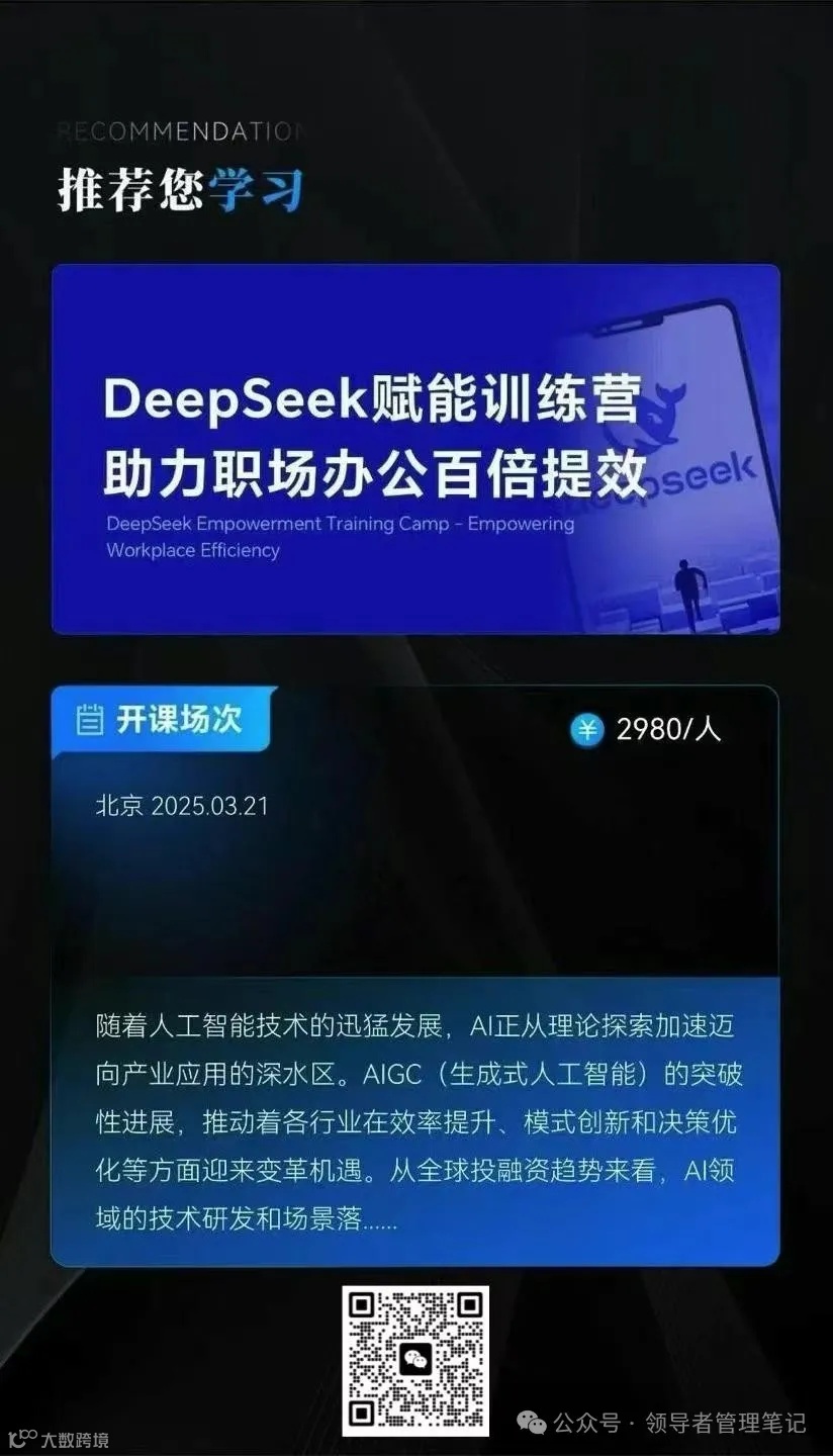 仅剩10个名额!3月21日北京,《DeepSeek赋能训练营——助力职场办公百倍提效》,扫描下文二维码了解、报名~