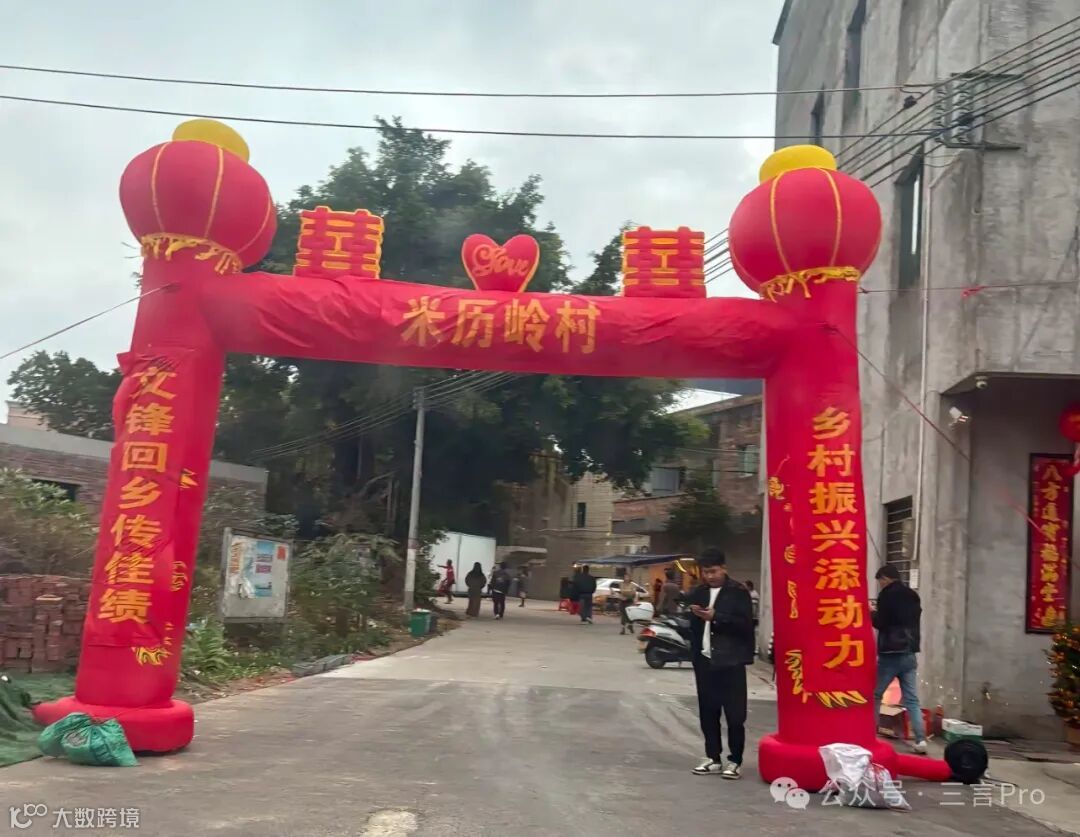 就连平时办婚礼用的双喜拱门也被立了起来,贴了上下联:“文锋回乡传佳绩,乡村振兴添动力”。