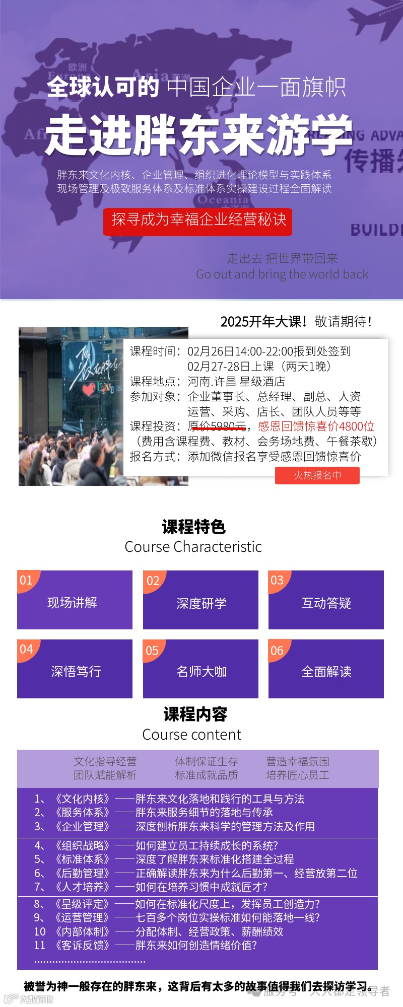 课程由胖东来原高管乔老师(工龄20年)和前胖东来人事体系负责人(工龄9年)以及胖东来原后勤部一把手(工龄15年),结合胖东来实战经验,倾情打造🎉