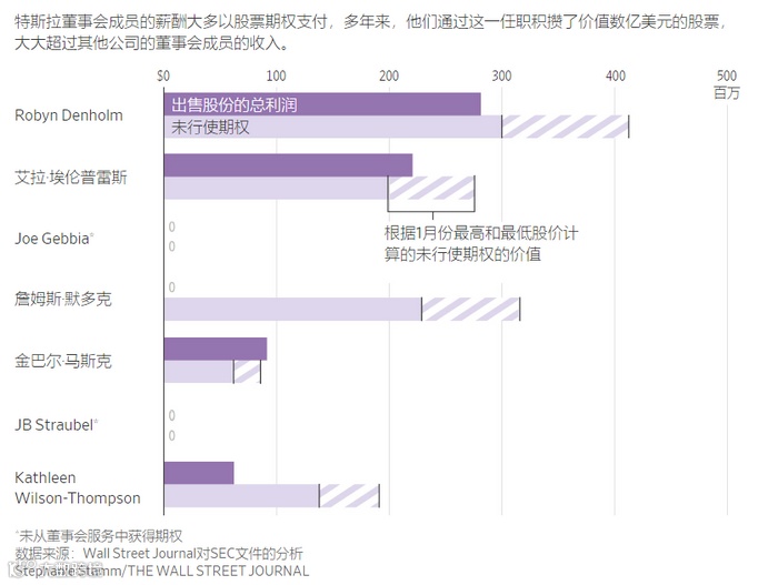 在特斯拉董事会,埃伦普雷斯通过出售董事薪酬所获得的股票赚了超过2.2亿美元,并拥有按最新价格计算价值超过2亿美元的额外期权。