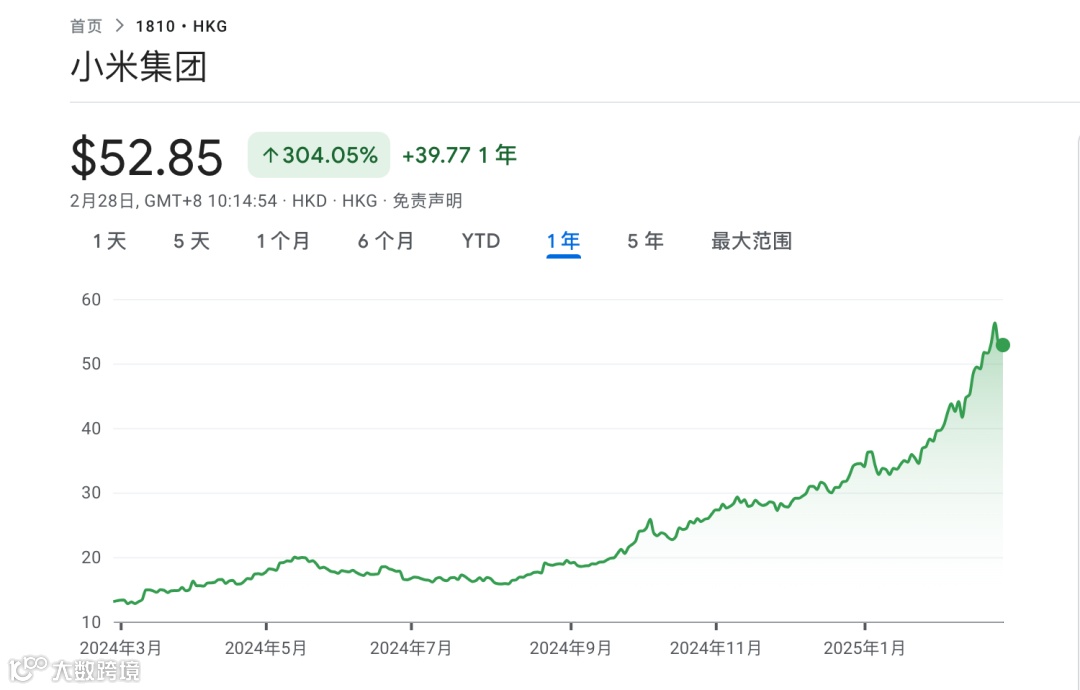 这段时间小米的股价也是连破新高: