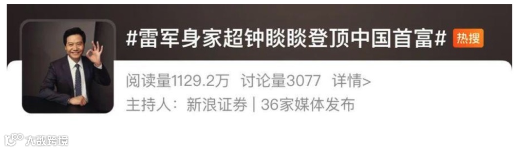 昨天还网上还传出雷军成了新首富了: