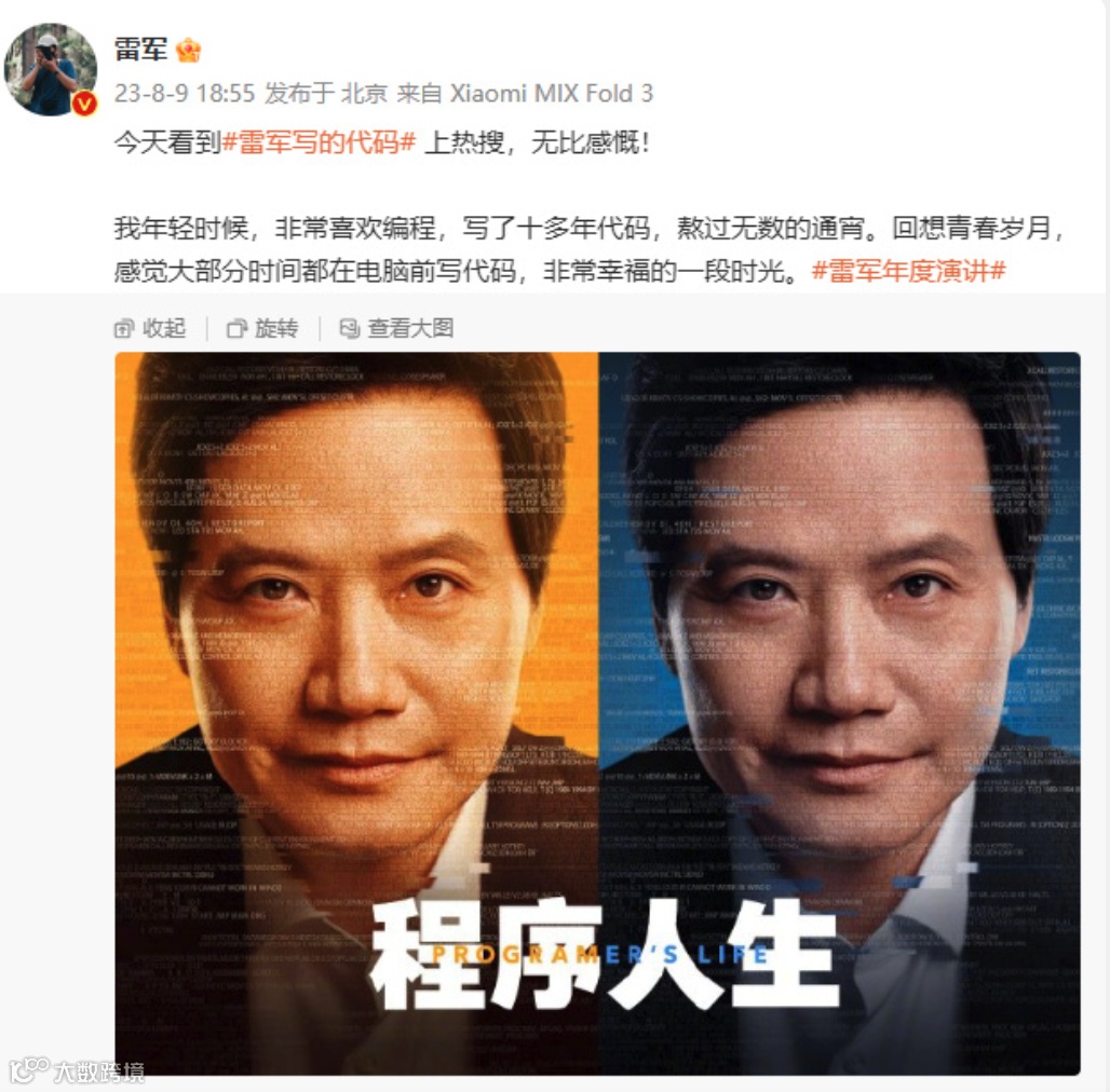 “这下真成雷布斯了”