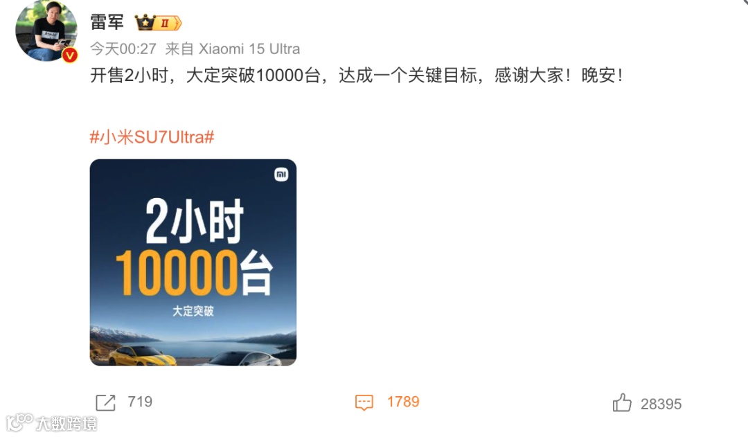 发布会后我接受媒体采访,一个同事非常激动地跑进来告诉我,小米SU7预定量4分钟破1万,27分钟破5万。