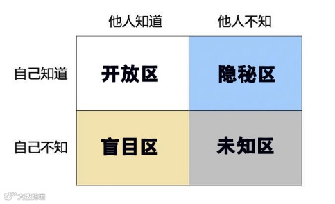 首先,按照“自己知道-自己不知道、对方知道-对方不知道”两个维度,画出一个四象限图:双方都知道,那就是开放区;自己知道、对方不知道,那就是隐秘区;自己不知道、对方知道,那就是盲目区;而双方都不知道,那就是未知区。