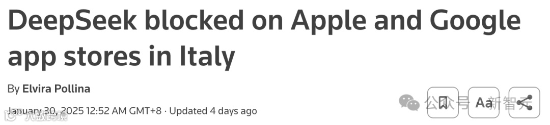 在1月30日,由于数据隐私问题,意大利已阻止对DeepSeek的访问。