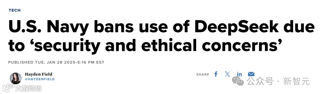1月28日,CNBC报道:因「安全和伦理问题」,美国海军禁止使用 DeepSeek。