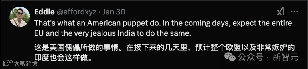 老外自己都调侃道:想象一下,未来欧洲人可以使用最先进的中文模型,而美国人则不行。