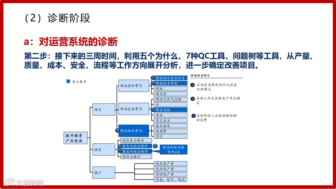 诊断:从运营系统(浪费/波动性分析)、管理系统(流程/组织)、理念行为三方面识别问题。
