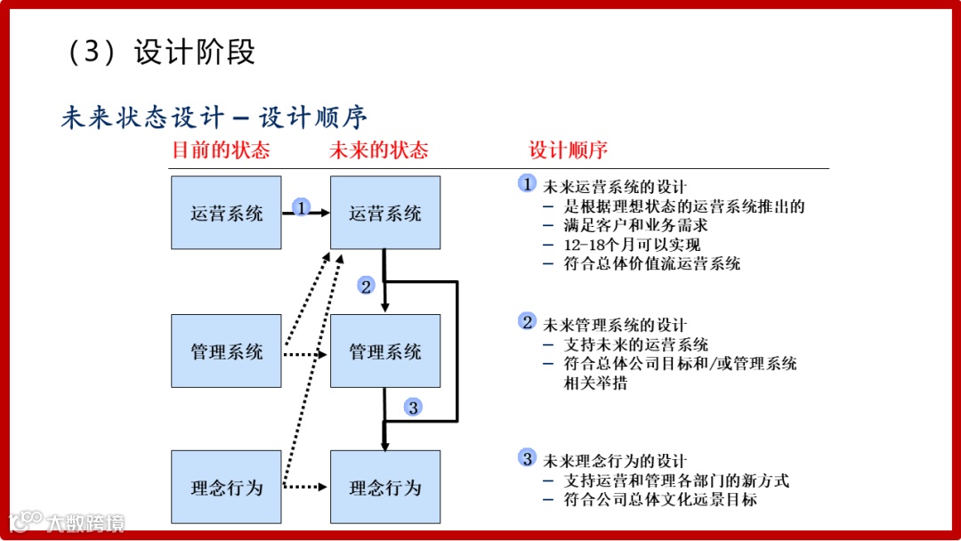 设计:制定未来状态方案(流程优化、管理架构调整)。