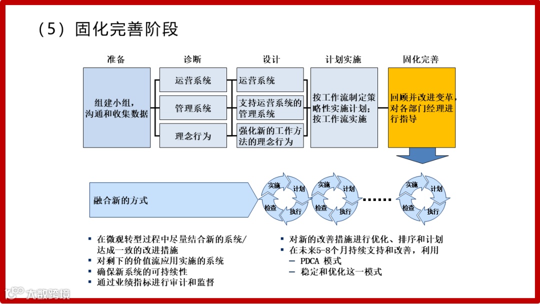 固化完善:标准化操作(SOP)、建立持续改进机制。