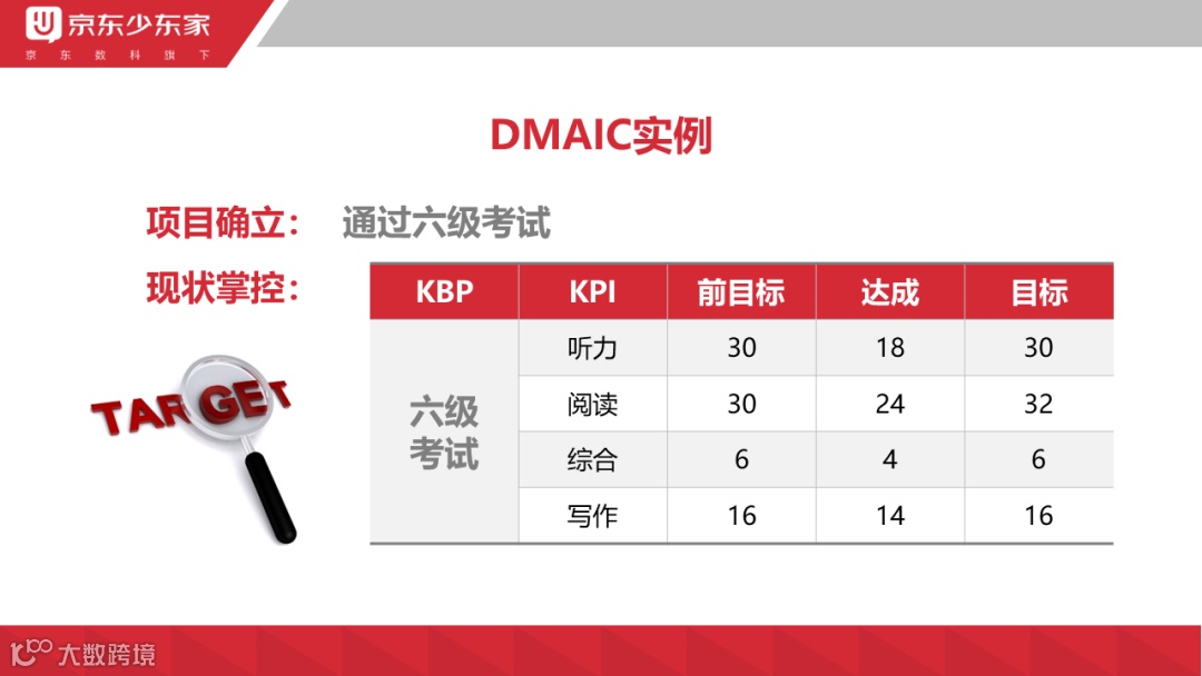 示例:将"通过六级"拆解为听力、阅读等细分KPI