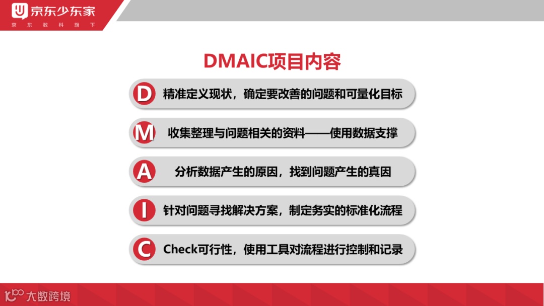 这份文档系统性地介绍了DMAIC方法及其应用,结合京东数旗的实践案例,展示了如何通过结构化流程解决实际问题。以下为逐层解读: