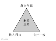 因此,“会说三角”的第一个三角就是利益三角。其中包含三个要素,分别是解决问题、他人利益、言行一致。