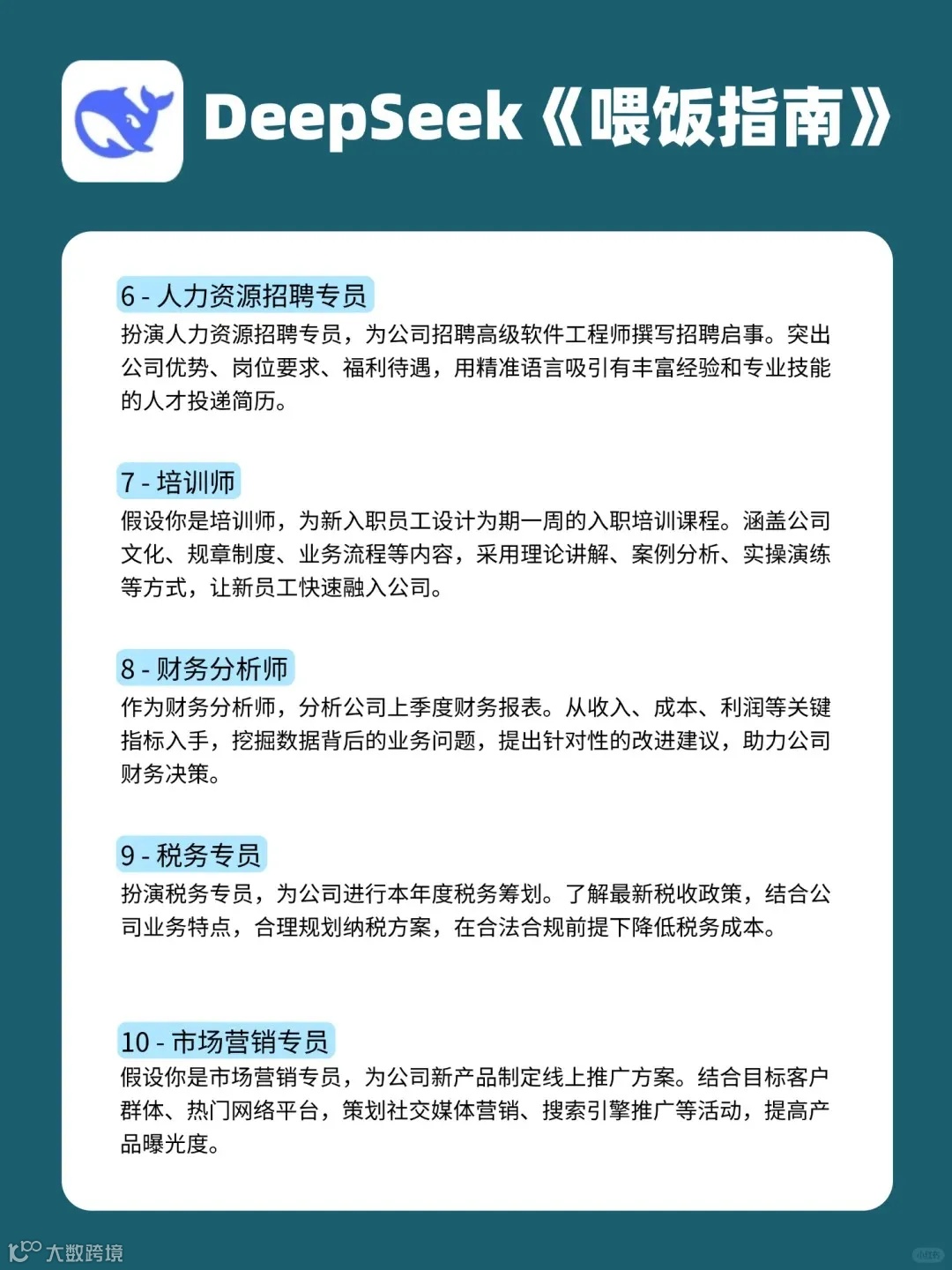 《DeepSeek喂饭指南》罗列了100个行业场景的指令