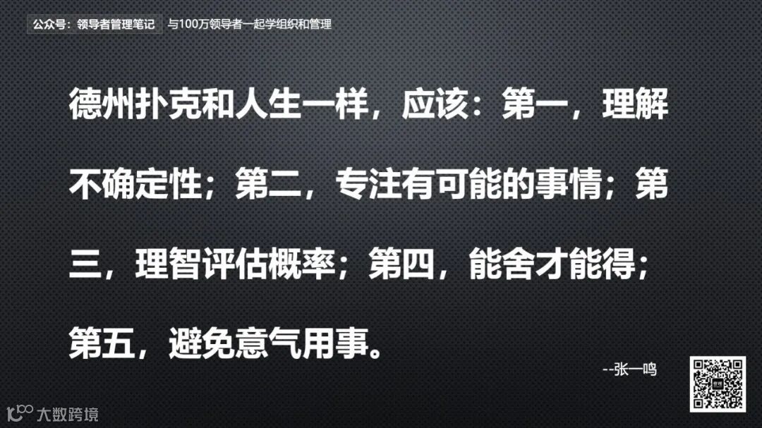 其实,德州扑克和人生一样:应该:第一,理解不确定性;第二,专注有可能的事情;第三,理智评估概率;第四,能舍才能得;第五,避免意气用事。